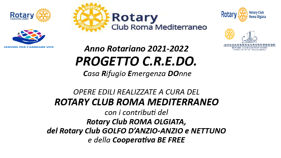 Il giorno 11 marzo 2022 è stato un giorno importante per l’anno rotariano 21/22 del nostro Club: abbiamo infatti consegnato le chiavi dell’immobile che sarà adibito a Casa Rifugio, come recita l’acronimo C.R.E.Do. La consegna è stata fatta nelle mani di Oria Gargano, Presidente della Cooperativa Be Free, beneficiaria del progetto e alla presenza dei rappresentanti della ONLUS Casa di Maria che ha concesso in comodato l’uso della villetta proprio per la finalità di farne una casa di accoglienza.